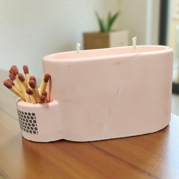 Su diseño incluye un pequeño compartimento integrado para guardar cerillas (incluye 20 cerillas), práctico y encantador, ideal para tenerlo todo a mano y encender tu vela cuando quieras.
